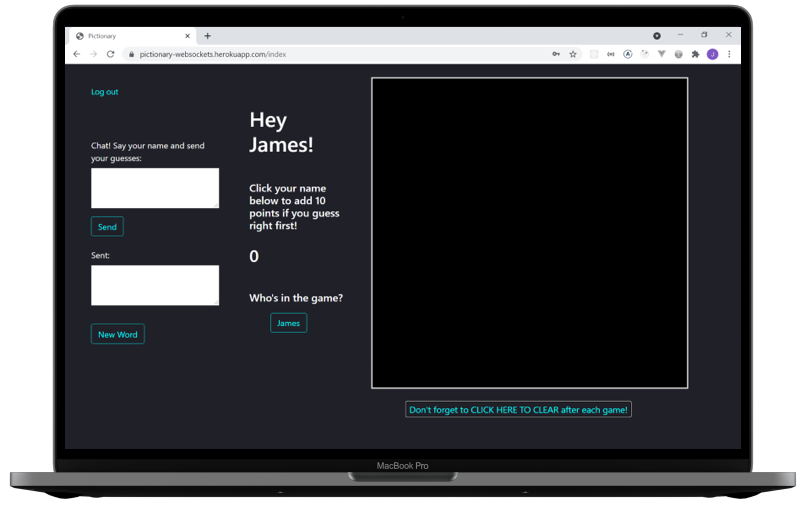 A pictionary game using P5.js and websockets with a MongoDB database.